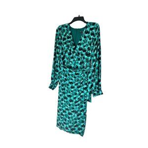 Maggy London Womens Green Black Print Long Sleeve Wrap Midi Dress Sz 10 New