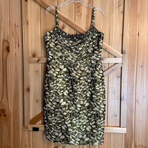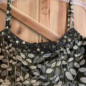 Maggy London Women’s Green & Gold Brocade Cocktail Dress Sleeveless Sz 12