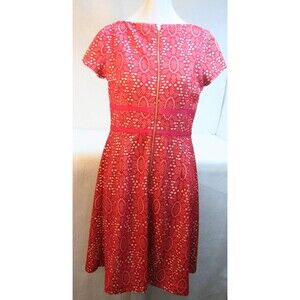 Maggy London Womens Red Eyelet Lace A-Line Dress Size 8 Short Sleeve Lined Flowy