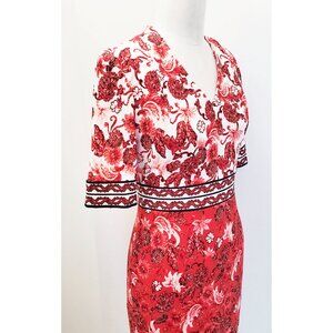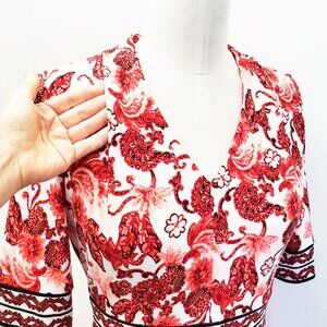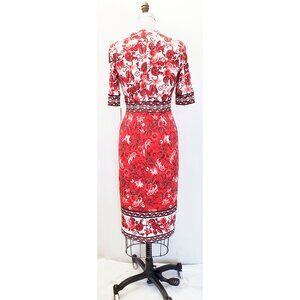 Maggy London Womens Red White Border Print Floral Short Sleeve Midi Dress NWT 2
