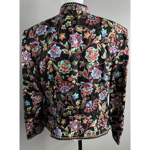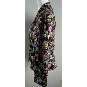 Maggy London Women's Silk Blazer Multi color Sz 12P Button Closure. Gold braided Trim lined Jacket coat. Great condition