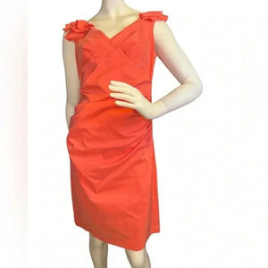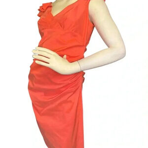 Maggy London Women's Size 10P Orange Color Ruffle Sleeve Detail Dress. #237