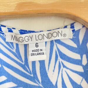 Maggy London Wrap Dress Blue White Leaf Print Sz 6
