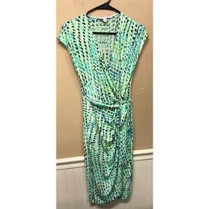 Maggy London Wrap Dress Stretch Size 4 Green Print