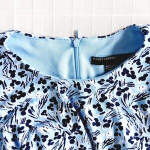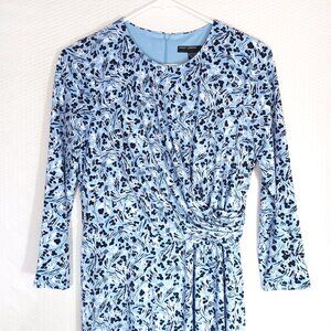 Maggy London Wrap Front Dress Light Blue & Navy Floral Abstract Print Size 2