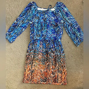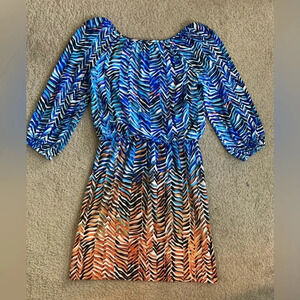 Maggy London Y2K Orange and Blue Chevron Print Long Sleeve Dress Size 6