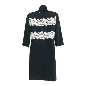 Maggy London black mod A-line style embroidered crochet mid sleeve dress size 4