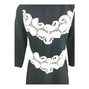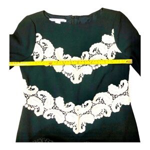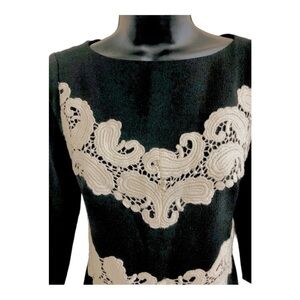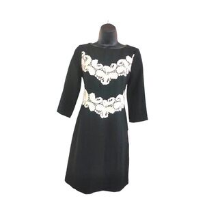 Maggy London black mod A-line style embroidered crochet mid sleeve dress new size 4