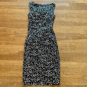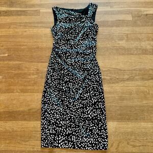 Maggy London black white sleeveless midi sheath dress size 6 b16