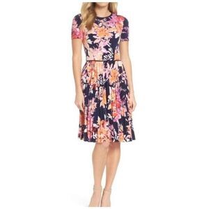 Maggy London floral fit & flare accordion pleated 4P skater dress