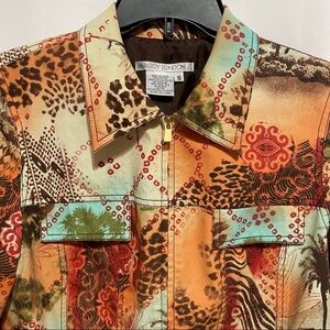 Maggy London jacket, size 10, an awesome patterned print, 100% cotton, never worn, so in like new preloved condition!