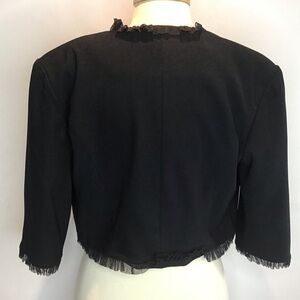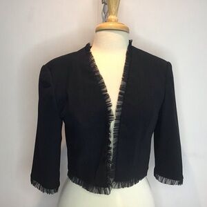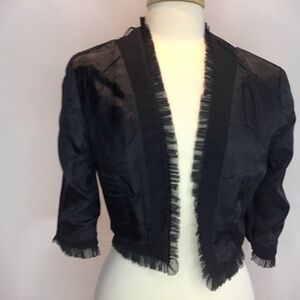 Maggy London open front bolero cropped netting trimmed lined black jacket size 8