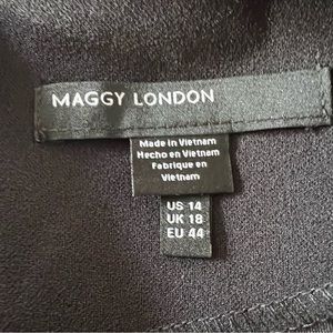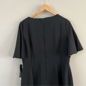 Maggy London ruched shoulder short sleeve sheath dress ladies size 14 black