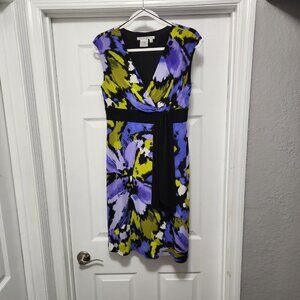 Maggy London size 6 Floral Tunic V-Neck Dress with Belted Waist Detail