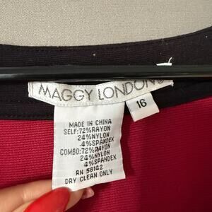 Maggy London Women Colorblock Sheath Dress Black Red 3/4 Sleeve sz 16 Cocktail