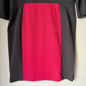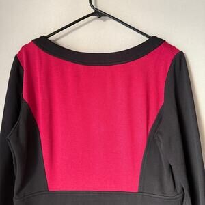 Maggy London Women Colorblock Sheath Dress Black Red 3/4 Sleeve Size 16