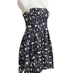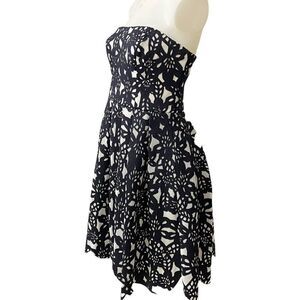 Maggy London Women's Bonded Mesh Flower Fit and Flare Navy/White cut out sz US 6