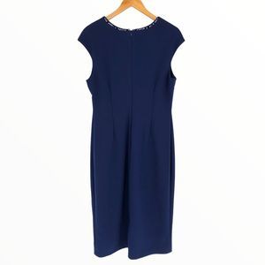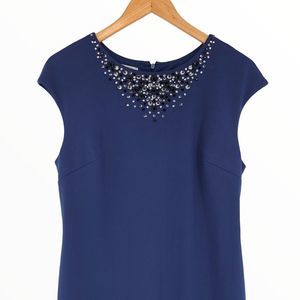 Maggy London Evening Blue Cap Sleeve Rhinestone Neckline Sheath Dress NWT 14