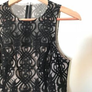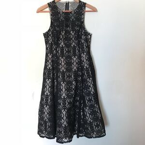 Maggy London Sz 4 black nude lace fit and flare dress FLAWED- there is a rip to the lace at the back as pictured