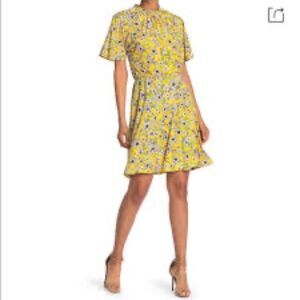 Maggy London Womens A Line Dress Multicolor Midi Flouncy Floral Pleated size 4