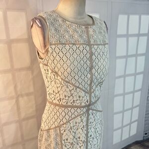 Maggy London cream ivory lace patchwork sheath dress size 12