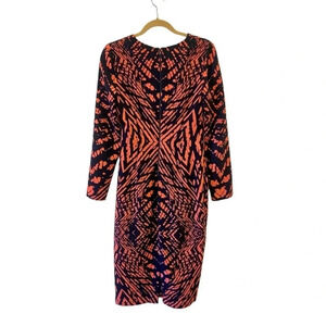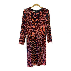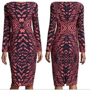 Indulge in sophistication with our Maggie London Abstract Bodycon Dress! Embrace bold style with its captivating tie-dye and abstract print in navy and coral pink. Designed to flatter, this size 4 midi dress boasts a figure-slimming pencil silhouette and stretchy 4% spandex for comfort. With darted details for a slimming effect, zippered back, and fully lined, it's perfect for any occasion.