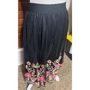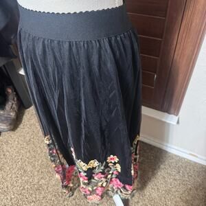 Magic Black Skirt Floral Embroidered Mesh overlay midi whimsigoth Fairy Goth L
