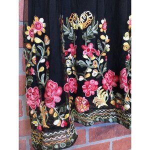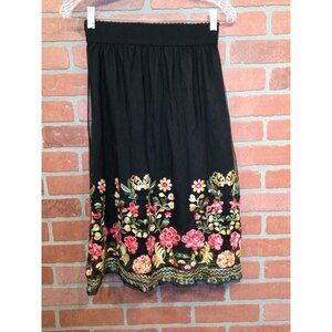 Magic Black Whimsigoth Skirt Dark Floral Embroidery Mesh Overlay Size M Pull On