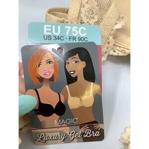 Magic Bodyfashion Women's 34C Latte Luxury Gel Bra Underwire Lace Trim Q6-6
