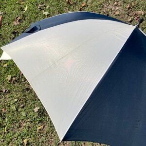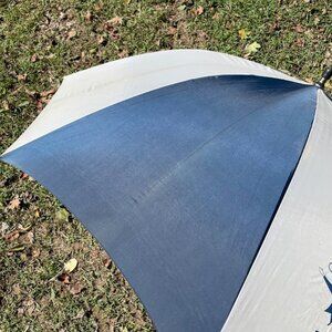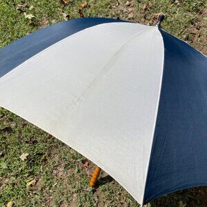 Magic Chef Appliances Blue and White Large Umbrella Wood Handle Vintage
