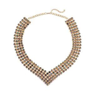 This Austrian crystal multi-layer necklace flaunts retro-style jewelry and radiates unparalleled glamour. The cluster of Austrian crystals studded multilayers, closely set together covering the neckline in glamour.