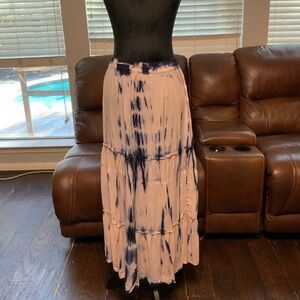 Chic maxi skirt with tie-dye design. Features light pink and navy hues. Perfect for casual wear.