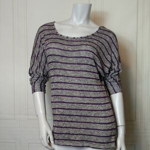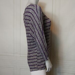 Magic Fit Top Womens Medium Purple Silver Striped Long Sleeve Stretch