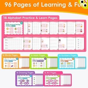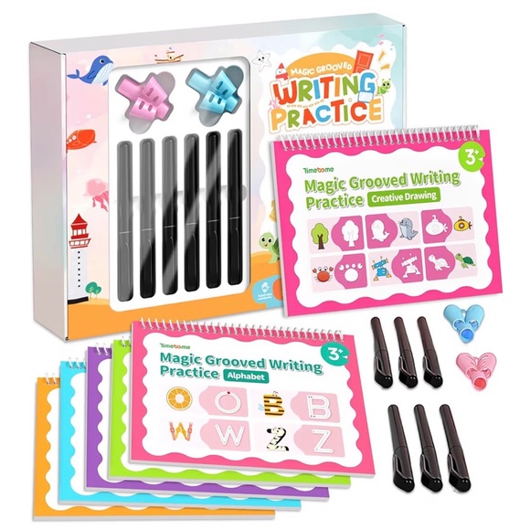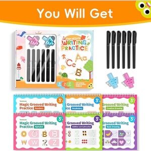 Magic Grooved Writing Practice, Large Grooved Handwriting Practice for Kids 5-7 8-10, Preschool Learning Activities, Tracing Books for Kids Ages 3-5, Preschool Workbook, Reusable Write Number Letter