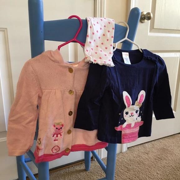 Sweater (has some fuzz on it) Leggings EUC Shirt EUC