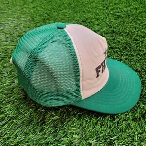 Magic Headwear Fringe trucker hat green and white mesh snapback cotton front polyester back OSFM distressed AS IS shop now