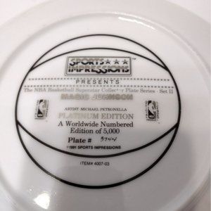Only 5,000 copies of this plate were ever made. This is marked # 3744 / 5000 on the back. Excellent condition, made in 1991 by Sports Impressions, Platinum Edition limited collector plate. About 8.5 inches wide. There is no box - this is for the plate alone. See photos. A great addition to the collection of any basketball collector!