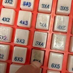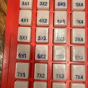 There are a lot of great manipulatives for learning basic operations, but this is perfect for children just beginning to multiply. Why? Because it provides instant feedback! The keyboard is a 9 x 9 row grid of translucent buttons with a problem on each button (i.e., 4x6, 2x3, 6x8). To see the answer, simply push the button and it'll show up. Great for little hands!