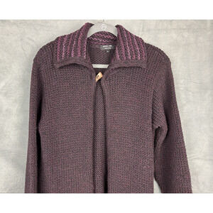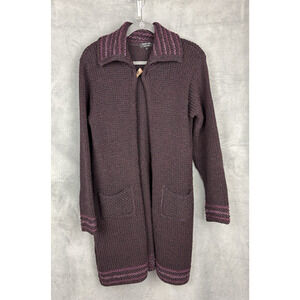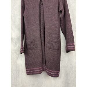 Magic Line Italy Wool Blend Knit Long Cardigan Sweater Size L Deep Purple Boho