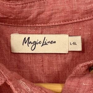 Magic Linen Button Up High Low Tunic Top Size l / XL Pink Short Sleeve Lagenlook