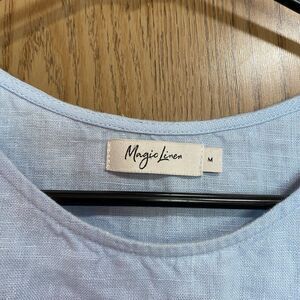 Magic Linen Women’s Medium 100% Linen Sleeveless Shirt Blue