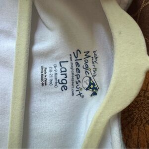 Gently used and in good condition. This sleep suit is a game-changer for transitioning your baby out of the swaddle — helps promote longer stretches of sleep by providing a cozy, secure feeling. Size Large