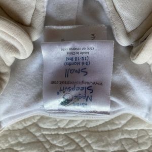 Excellent condition - 1 off white Magic Merlin sleepsuit, size 3-6 months available. Transitions baby from swaddling to soundly sleeping on their back. Like new condition. Magic Merlin suits sell new for $39.99. Price $20. I will mail next day.