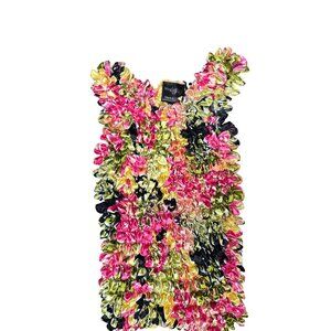 A whimsical creation that dances with a riot of colors, this crinkle scarf shrug by Magic Scarf Co. envelops its wearer in an enchanting embrace. The hues of pink, yellow, and black harmonize in a kaleidoscope of vibrancy, offering a versatile addition to any wardrobe. A true celebration of texture and color, this piece is a testament to playful elegance.
