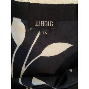 The Magic Skirt in Black White Floral is a stylish and versatile addition to any woman's wardrobe. This 2X fit and flare midi skirt is perfect for both party and casual occasions, with a flattering mid-rise waist and a convenient zip closure. Made from comfortable cotton knit fabric, this skirt in a bold black color with a trendy floral pattern is a must-have for the summer, fall, and spring seasons. Its bohemian and festival-inspired design adds a unique touch to any outfit, making it a standout piece for any fashion-forward woman.