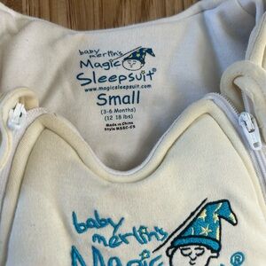 2- Baby Merlin’s sleepsuits(purple and butter yellow). Includes sleeping baby sack.