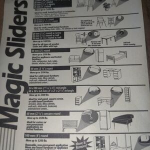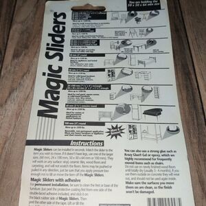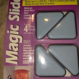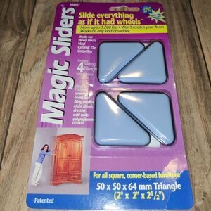 Magic Sliders 2x2x2-1/2 Inch Triangle Self Adhesive Furniture Glide 4-Pack. Packaging has some wear from age. Sold as is.