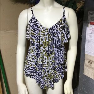 Wonderful swimming suit top in great condition just downsizing. Looks great with leggings or jeans. Has magic front panel that so special.