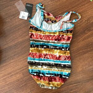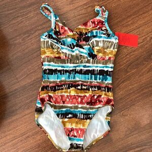 Bright and fun swimsuit with vibrant stripes. Perfect for a day at the beach or pool. New with tags