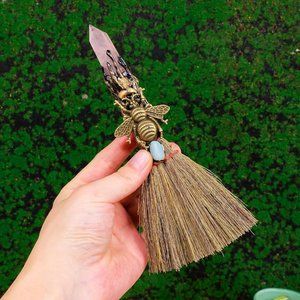 Each broom is unique due to the use of natural crystals and handmade craftsmanship.